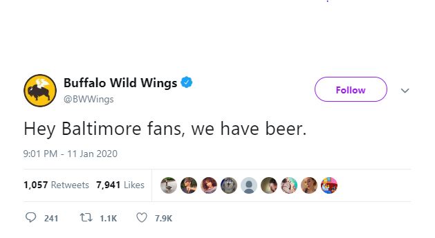 Honestly I hate to do it. I love B-dubs. Their menu is outstanding, their wings are perfection, and I would drink their sauces with a straw. But for us suffering Viking fans, it may be time find a new place that has wings, beer, and sports. Why you ask? Because of this tweet.